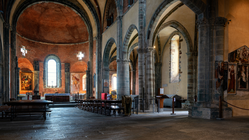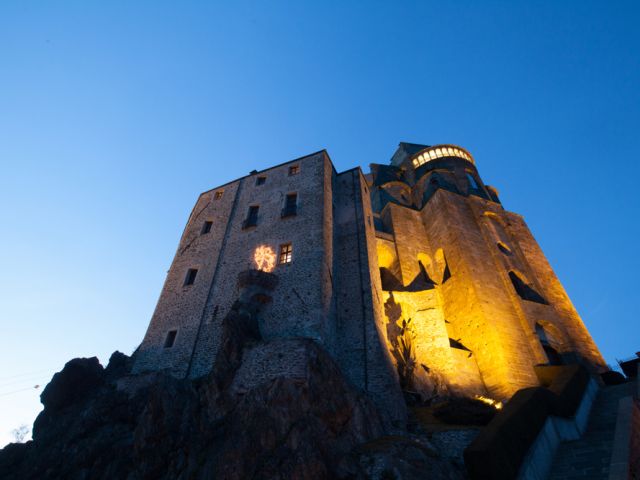 La Sacra di San Michele è un'abbazia situata sul Monte Pirchiriano a a 960 metri di altitudine, all’imbocco della Val di Susa, a 40 km da Torino, in Piemonte. Il complesso, risalente probabilmente all'anno 1000, è considerato il simboli della regione.Di stile architettura romanica e gotica, l'interno dell'abbazia contiene alcuni elementi architettonici particolari, come il Portale dello zodiaco, una scultura con stipiti decorati con segni zodiacali e costellazioni, e lo Scalone dei morti, una ripida scalinata scavata nella roccia.